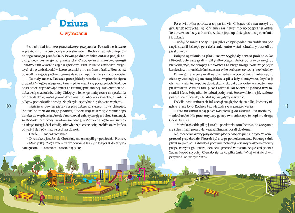 W każdej z historii przedstawiona jest sytuacja, z którą musi zmierzyć się dziecko, będące jej uczestnikiem. Dzięki temu mamy okazję do jej przeanalizowania z młodym czytelnikiem, inspirację do rozmowy na ważny temat i wspólne poszukiwanie najlepszego z rozwiązań czy też prawidłowego zachowania. Bardzo lubię takie pozycje, które inspirują do rozwiązywania problemów, a nie podsuwają gotowe recepty. Myślę, że dzięki temu będzie łatwiej maluchowi poradzić sobie również w innych sytuacjach.