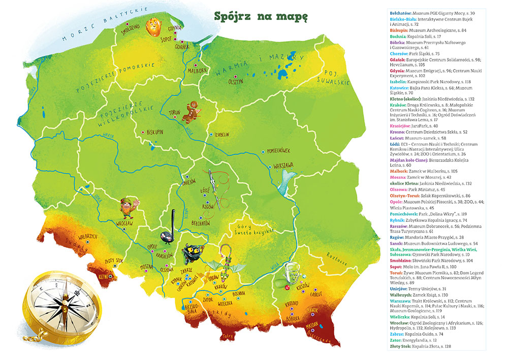 Po bli¿szych i dalszych zak±tkach kraju oprowadzaj± czytelników niezwykli przewodnicy znani z lokalnych legend i tradycji, tacy jak Smok Wawelski, bursztyn z ba³tyckiej pla¿y czy jeden z wroc³awskich krasnoludków. Dziêki temu podró¿owanie zamienia siê w pe³n± humoru i niespodzianek przygodê.