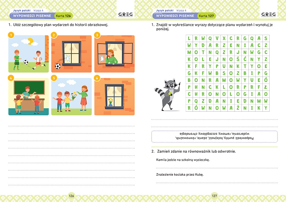 Ka¿da karta to osobna ca³o¶æ, mo¿na j± wyrwaæ i daæ dziecku do rozwi±zania w domu albo po skserowaniu u¿yæ jako pomoc na lekcji. Ksi±¿ka jest kolorowa, mi³a dla oka, przygotowana z dba³o¶ci± o estetykê. Uczeñ mo¿e te¿ sprawdziæ poprawno¶æ rozwi±zañ pod kodem QR dostêpnym w ksi±¿ce.