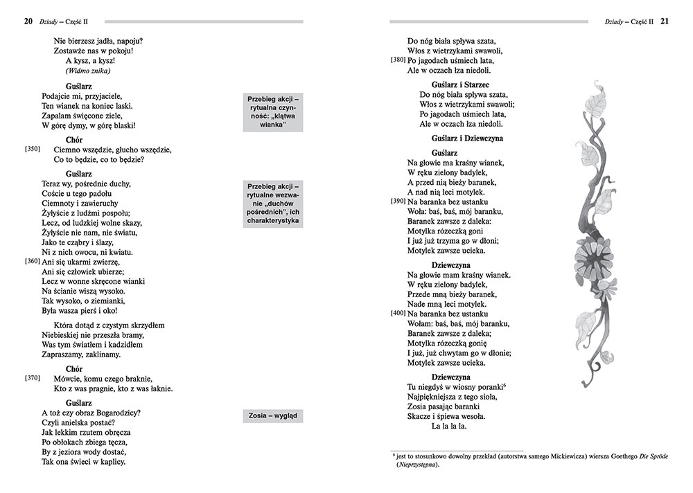 Mam ogromny sentyment do tego utworu. Chodziłam do szkoły imienia Adama Mickiewicza i wieki temu grałam Zosię, jednego z duchów, który pojawił się podczas uroczystości prowadzonej przez Guślarza. Lubię wracać do tego utworu, czyta się go bardzo szybko i w moim przypadku już zawsze będzie przywoływał wspomnienia z prób przedstawienia (...) Nowe wydanie tej książki dodatkowo podbudowuje klimat całości zawartymi w nim rysunkami. One robią świetną robotę i bez nich temu utworowi zdecydowanie czegoś by brakowało. Dodatkowo jest wydana w twardej oprawie, dzięki czemu nie zniszczy się szybko. Jeśli macie znajomych uczniów, którzy będą przerabiali tę lekturę, spokojnie możecie zainwestować w tę książkę. To będzie dobry prezent.