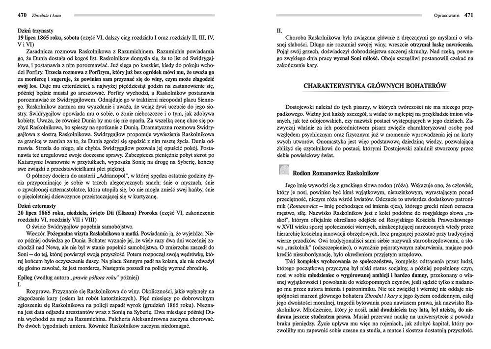 Świetna książka. Polecam nie tylko uczniom ale też innym czytelnikom. Powieść psychologiczna dziejąca się w Petresburgu. Możemy obserwować zmiany w psychice młodego studenta tuż przed jak i po dokonaniu zabójstwa. Jest to książka z kanonu lektur szkolnych, opracowanie przydatne, zawiera plan wydarzeń, streszczanie, opis bohaterów, ważne cytaty. Wszystko co potrzebne do opracowania ksiązki.