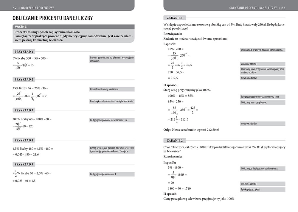 Jak zawsze w tej serii, ka¿de zadanie jest rozwi±zane krok po kroku, a tok dzia³ania i rozumowanie dok³adnie wyt³umaczone w komentarzach bocznych. To w³a¶nie ten nowatorski sposób prezentacji rozwi±zañ decyduje o sukcesie nauki z t± seri±. Gor±co polecamy!